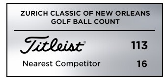 Titleist was the overwhelming golf ball of choice at the Zurich Classic of New Orleans with 113 players teeing up a Pro V1 or Pro V1x golf ball. That’s more than seven times the nearest competitor with 16 and more than all competitors combined.